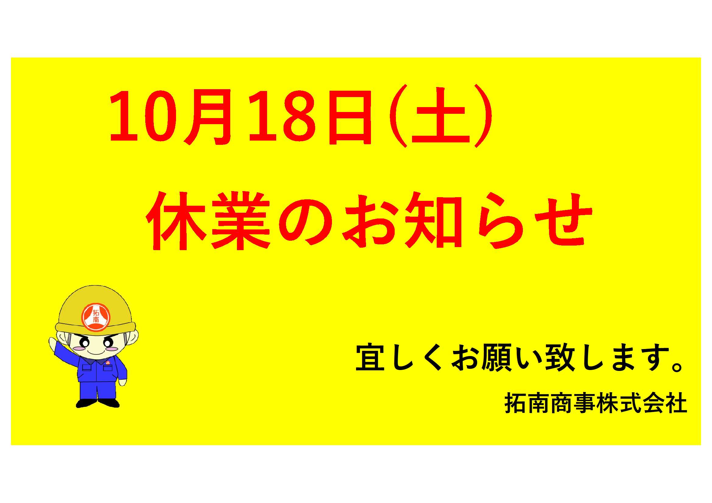 休業日のお知らせ(10/18)